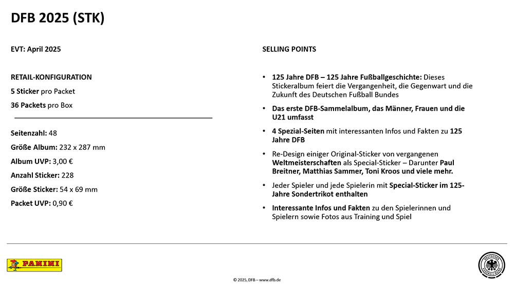 • 125 Jahre DFB – 125 Jahre Fußballgeschichte: Dieses Stickeralbum feiert die Vergangenheit, die Gegenwart und die Zukunft des Deutschen Fußball Bundes