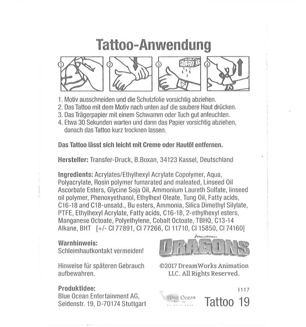 Offizielle Tattoo-Kollektion zum Film „Drachenzähmen leicht gemacht“ (Dragons). Jede Tüte enthält 2 coole Tattoos mit Motiven von Hicks, Ohnezahn und ihren Freunden.