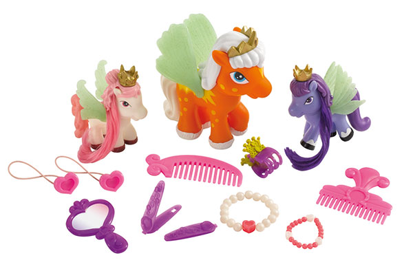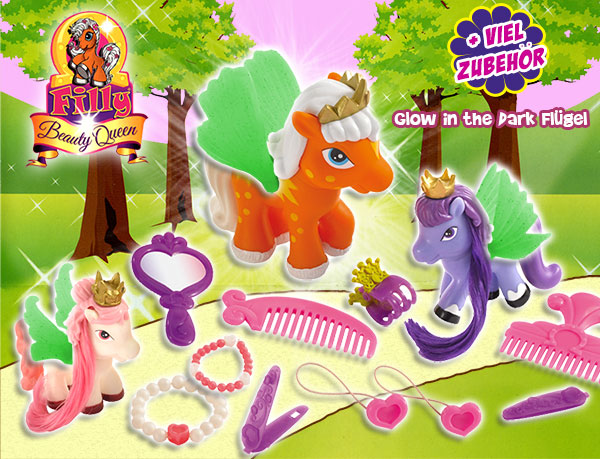 Box mit 3 Filly: Filly TITANIA, 13cm, Filly ELVIN und Filly THEADA, je 7cm, im Set mit Haarschmuck und Zubehör