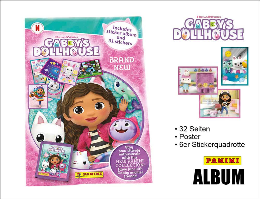 Für alle kleinen Gabby-Fans gibt es von Panini daher jetzt die erste schnurr-tastische Stickerkollektion Gabby’s Dollhouse !
