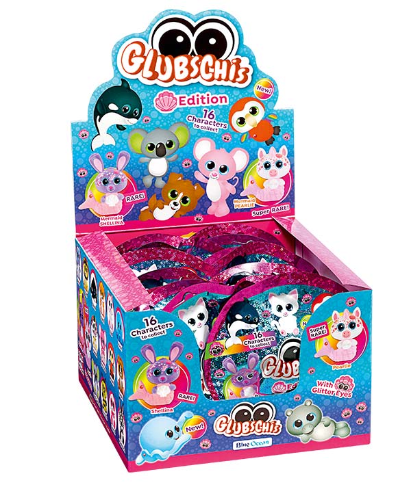 Tauche ein in die Welt der 16 liebevoll gestaltete Glubschis-Charaktere. Die lustigen Figuren bringen jede Menge Spiel- und Sammelspaß in deinen Alltag. Freue dich unter anderem auf das Mermaid-Einhorn Pearlie mit Permlutt-Horn und -Perle sowie Mermaid-Hase Shellina mit Perlmutt-Muschel!