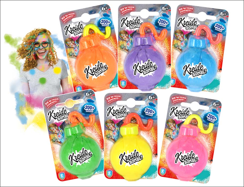 - Jede Kreide-Bombe einzeln auf Blisterkarte verpackt