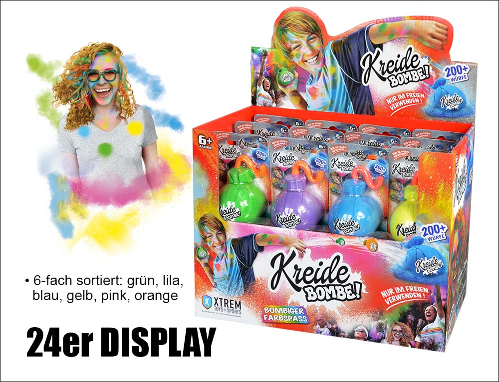 Display mit 24 Kreide-Bomben.