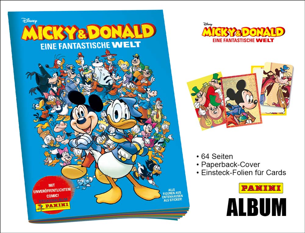 Im großen Disney-Jubiläumsjahr würdigt Panini die Klassiker unter den Comicfiguren mit einem ganz besonderen Album. Neben allen Charakteren und vielen Einblicken in das Entenhausener Leben finden Micky und Donald-Fans einen ganz neuen Original Comic zum Vervollständigen.