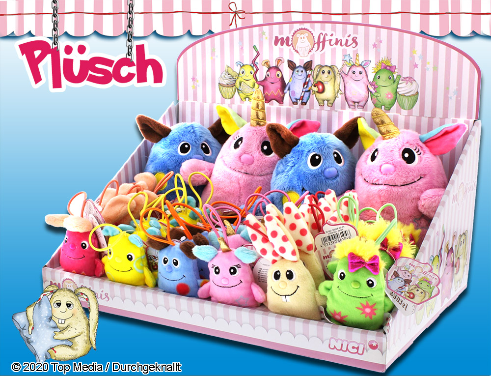 1 Display mit 4 x 18cm Plüsch und 36 x 8 cm Plüsch mit Loop = 40 Stück.