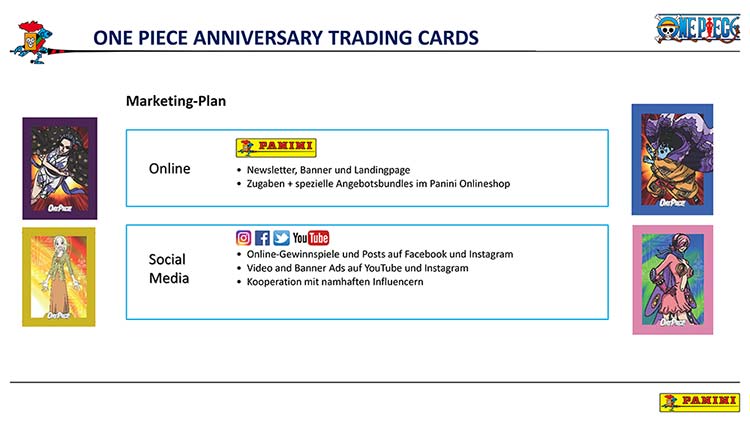 One Piece erzählt die epische Reise von Monkey D. Ruffy, der den legendären Schatz „One Piece“ sucht, um König der Piraten zu werden. Panini feiert das 25-jährige Jubiläum dieses ikonischen Mangas mit einer exklusiven Trading-Card-Kollektion und präsentiert Ruffy und seine Crew in beeindruckend gestalteten Trading Cards.