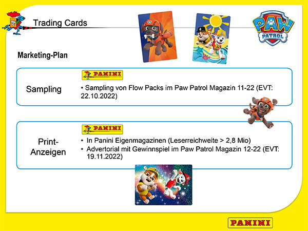 PAW Patrol ist die Top 1 Lizenzmarke im Vorschulbereich. Durchschnittlich schauen rund 387.000 Kinder am Tag PAW Patrol und der „PAW Patrol: Der Kinofilm“ stürmte im Sommer 2021 auf Platz 1 der Kinocharts!