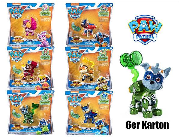 6 Stück im Karton. 6 verschiedene Charaktere. Die Paw Patrol Figuren sind kompatibel mit den Fahrzeugen und Spielsets von Spin Master