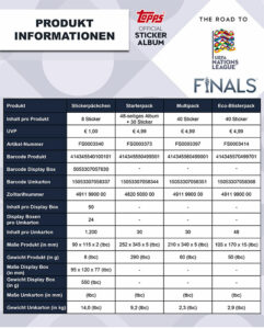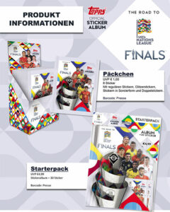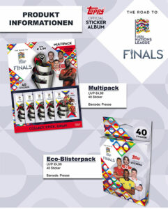 Die Sticker sind ab Anfang Juni 2022 im Handel und damit passend zu den Spieltagen eins bis vier der UEFA Nations League im Sommer. Hier können sich Fans auf Spiele wie Deutschland – England, Schweiz – Spanien, Österreich – Frankreich, Belgien – Niederlande, England – Italien, Polen – Belgien und viele weitere spannende Spiele freuen!