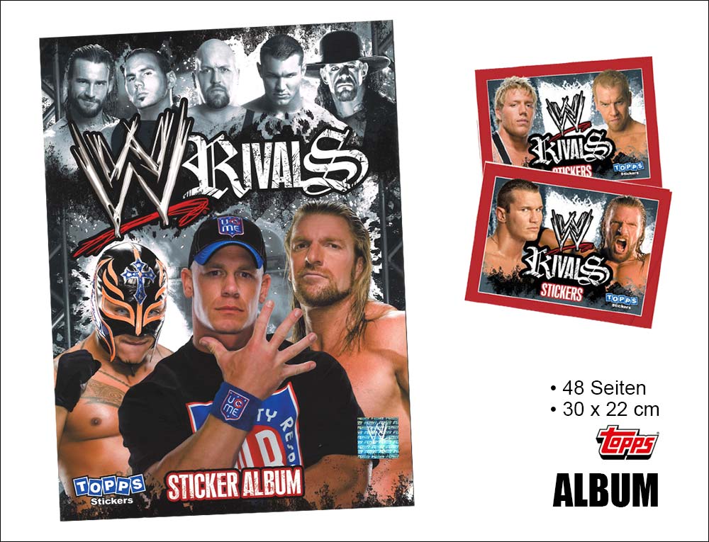 Mit 250 Sticker zum Sammeln kommt dieses unglaubliche Album inkl. einer gratis A2 Wand-Chart! Vollgepackt mit Superstars wie Randy Orton, Rey Mysterio und Undertaker, wird WWE Rivals mit Sicherheit ein großer Hit werden!