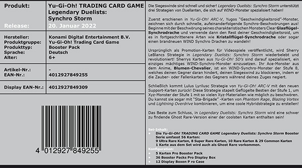 YuGiOh! Synchro Storm Booster – Legendary Duelists 8 – 36er DISPLAY